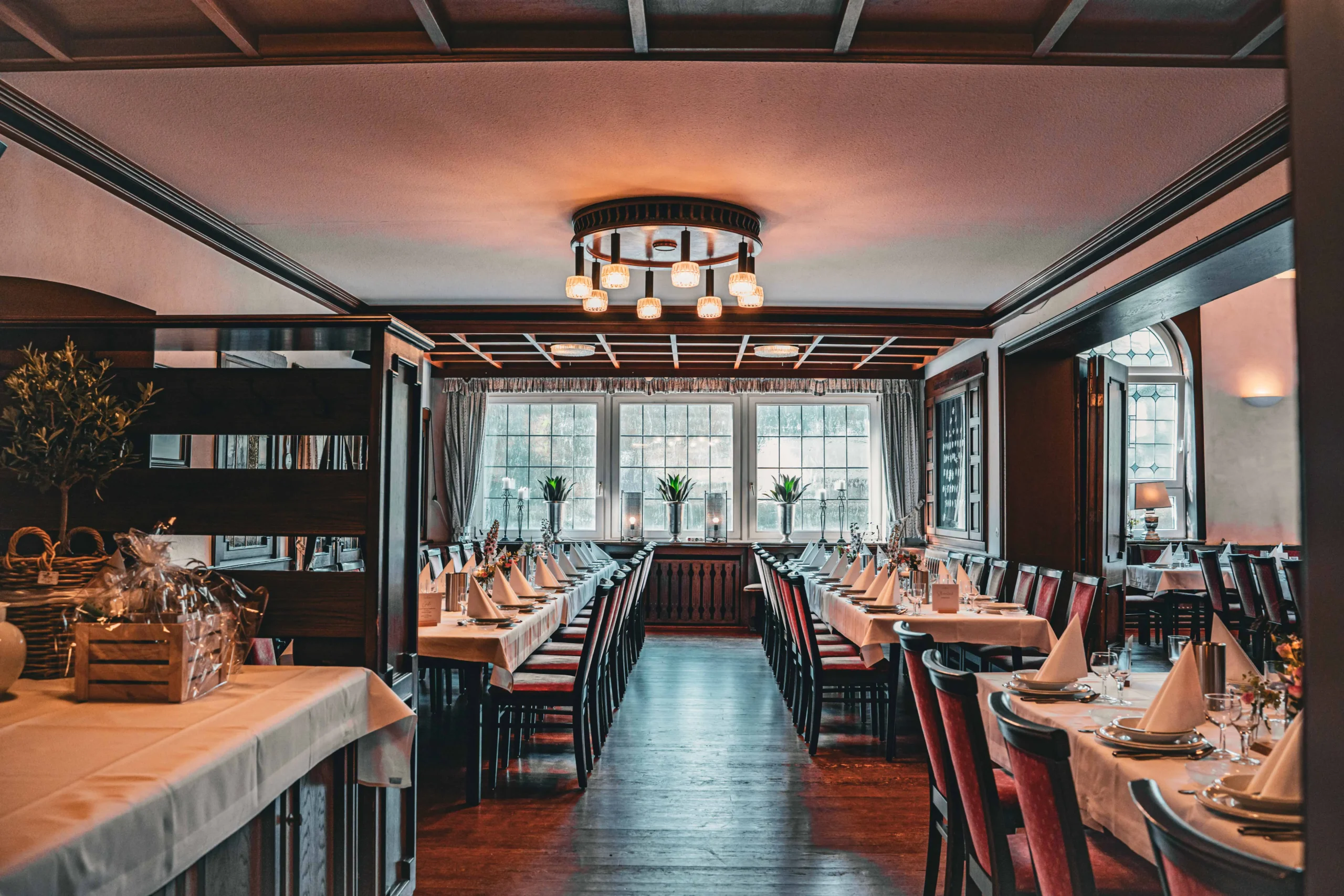 Unsere Wirtschaft bietet ein gemütliches Ambiente für entspanntes à la carte Essen in kleiner Runde. Mit Platz für etwa 20 Gäste ist dieser Raum ideal für intime Abendessen und kleinere Gruppen, die besonderen Wert auf eine persönliche Atmosphäre legen. Genießen Sie unsere vielseitige Speisekarte und lassen Sie sich in dieser charmanten Umgebung mit frisch zubereiteten, regionalen Spezialitäten aus der klassischen deutschen Küche verwöhnen
